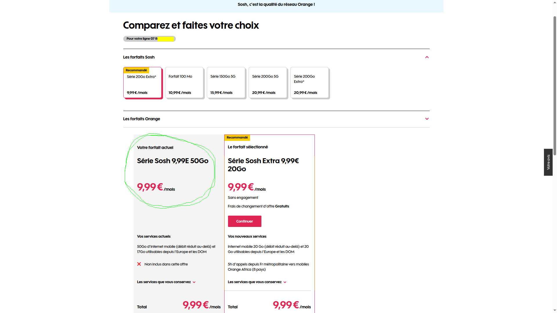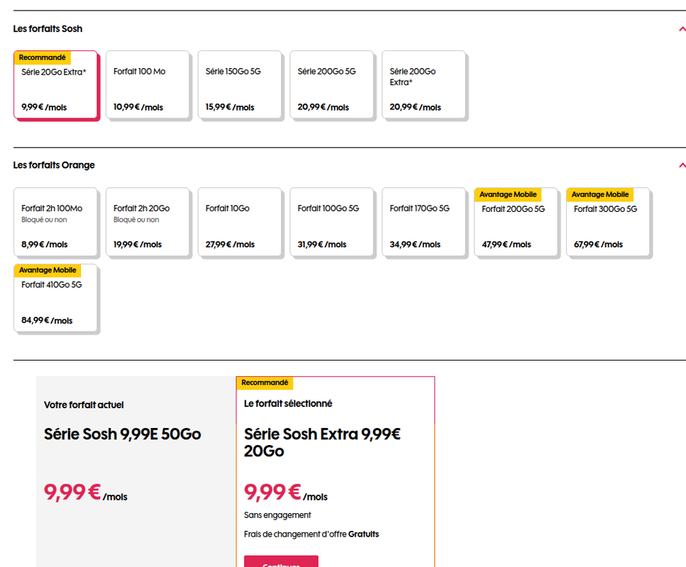 et je peux même encore changer ( choix proposé par sosh ) vers un forfait 5G chez Sosh ( j'attends une promo sur un mobile 5G ) ...... et je change de forfait....