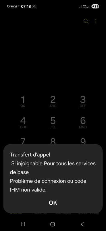 Transfert / Renvoi d’appel impossible (désactivation service VOLTE et VOWIFI)