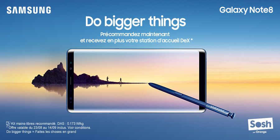 Pour tout précommande d'un Samsung Galaxy Note8 entre le 23/08 et le 14/09, la station Samsung DeX d'une valeur de 149,90€ vous sera offerte (conditions ici).