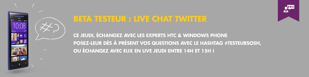 Bonjour, Dans le cadre du programme Beta Testeur, certains d’entre vous ont l’avantage de tester le Windows® Phone 8X par HTC jusqu’au 7 janvier. Durant ces quelques semaines, nos testeurs pass...