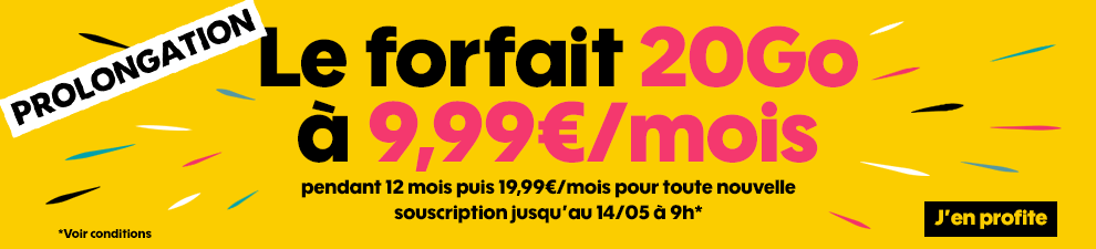 Nouvelle prolongation ! Le forfait 20Go à 9,99€/mois pendant 12 mois puis 19,99€/mois