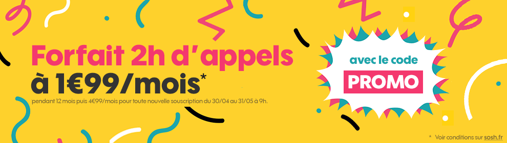 Profitez dès à présent du forfait 2h d'appels à 1,99€/mois pendant 1 an puis 4,99€/mois !
